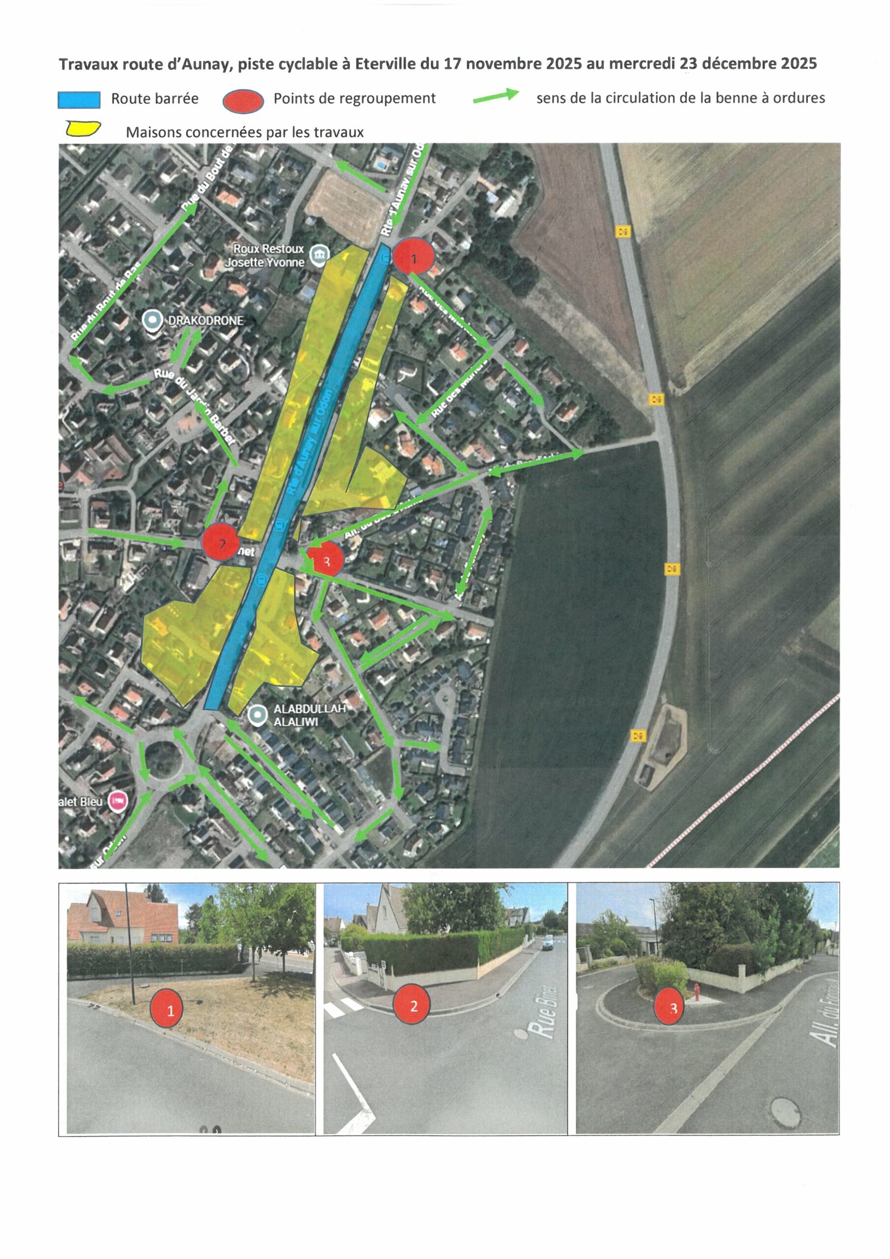 Modification de certains points de collecte durant les travaux Route d’Aunay du 17/11/2025 au 23 /12/ 2025.